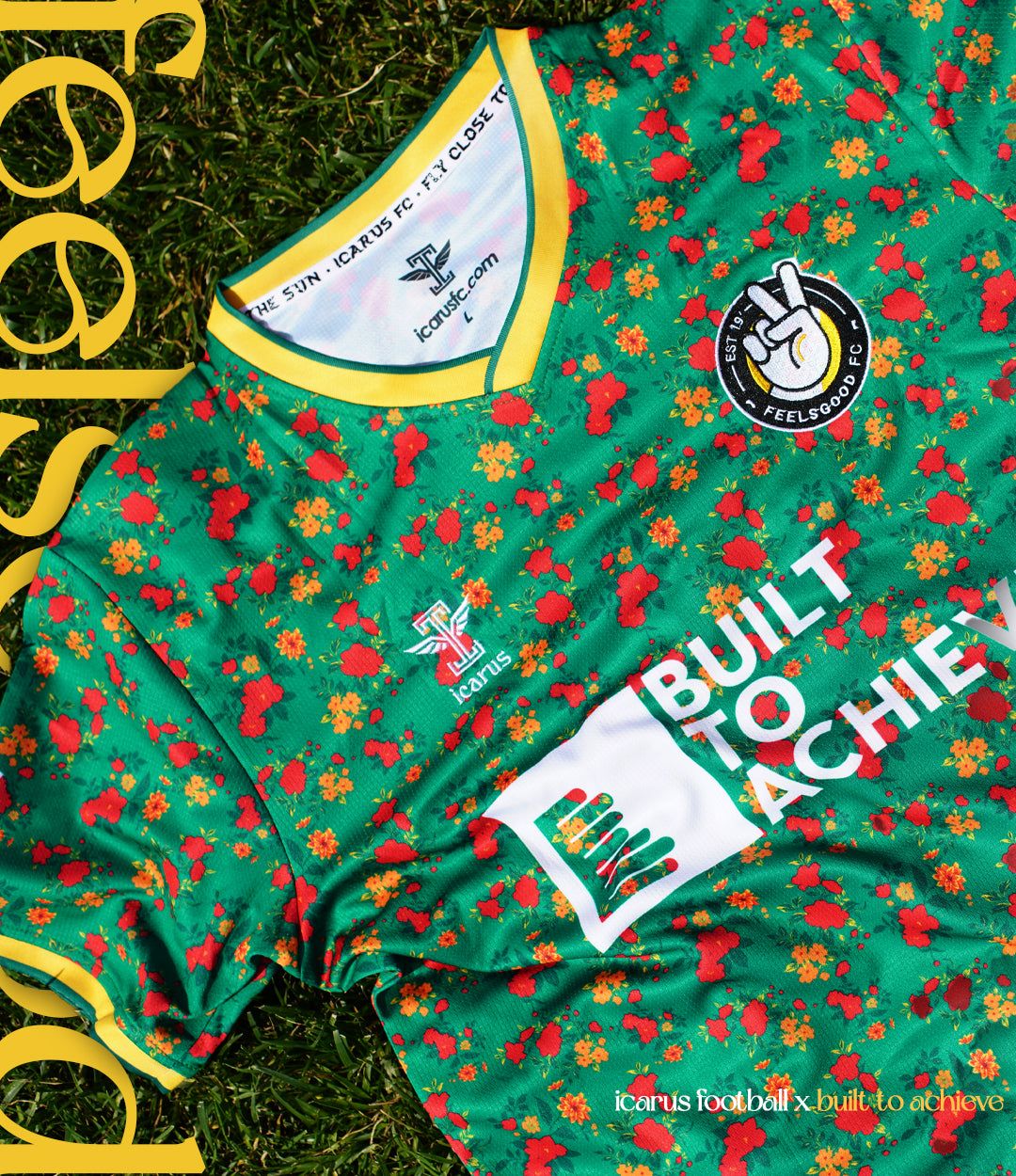 Our new vibrant alternate jerseys powered by Ian Anderson Fitness / Built to Achieve sport a detailed floral pattern that pays homage to traditional Japanese floral art and the constant growth of this flourishing club and community. We wanted to design something new and exciting with new color tones and an aesthetic that strays from old looks within the club, with the intention of making both waves in the Sunday League football scene and a stylish jersey for the everyday football fan- Forever Feeling Good ✌️