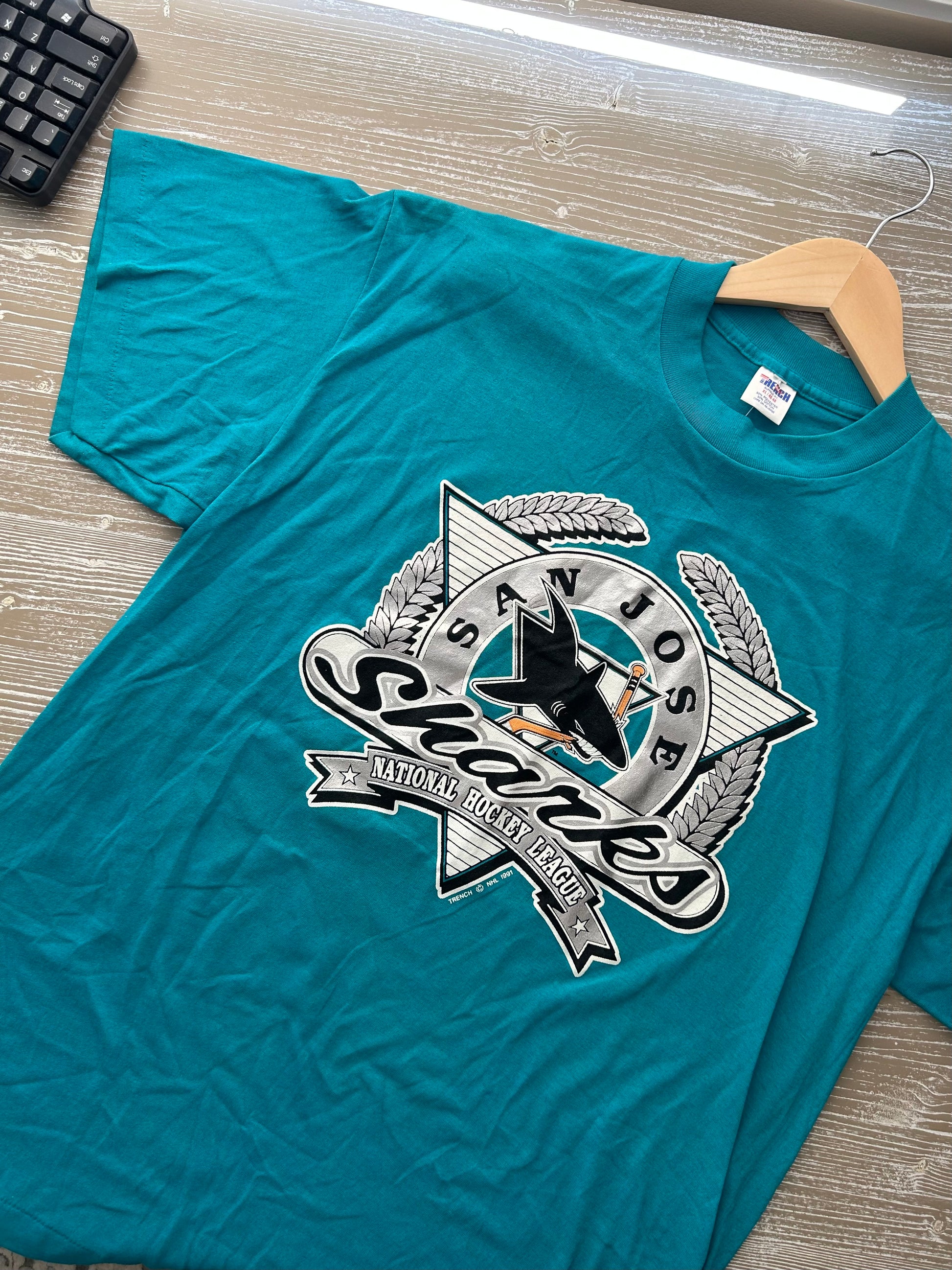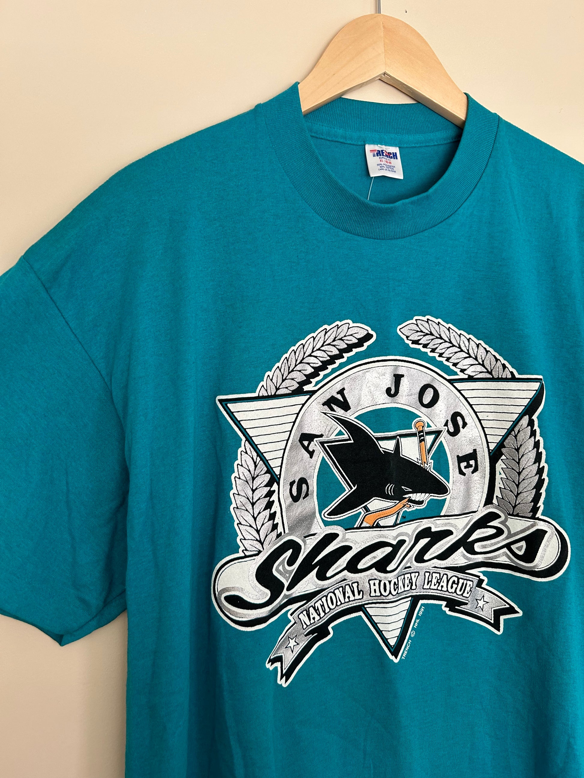 You're looking at a vintage San Jose sharks shirt perfect for everyday casual wear.Made with very soft cotton materials, designed by an old school t-shirt maker Trench based in Buffalo, NY.